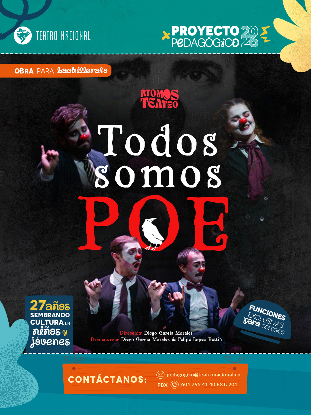 Bajo la dirección de Diego García Morales, “Todos Somos Poe” es un homenaje a los grandes de la literatura, una obra clown musical para jóvenes y adultos que promueve el amor por el teatro y la lectura, fomentando y sembrando las artes en las nuevas generaciones.